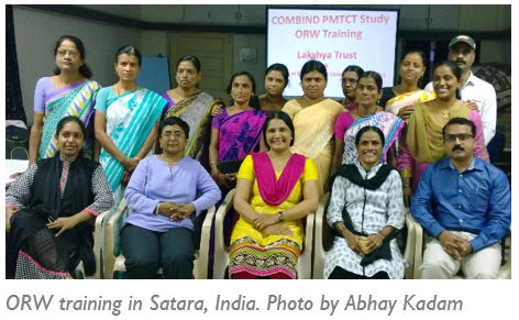 CCGHE has a successful track record of mobile health technology development and behavioral interventions for improving care retention in global health settings, and has been involved in this effort since early in the study design phase. The project was officially launched in India in spring 2015, with ORWs from Integrated Counseling and Testing Centers (ICTCs) across 4 Indian districts (Pune, Thane, Satara, and Sangli) participating. The target enrollment is 900 HIV+ pregnant and breastfeeding women, and maternal and infant health will be tracked until the babies reach 18 months.